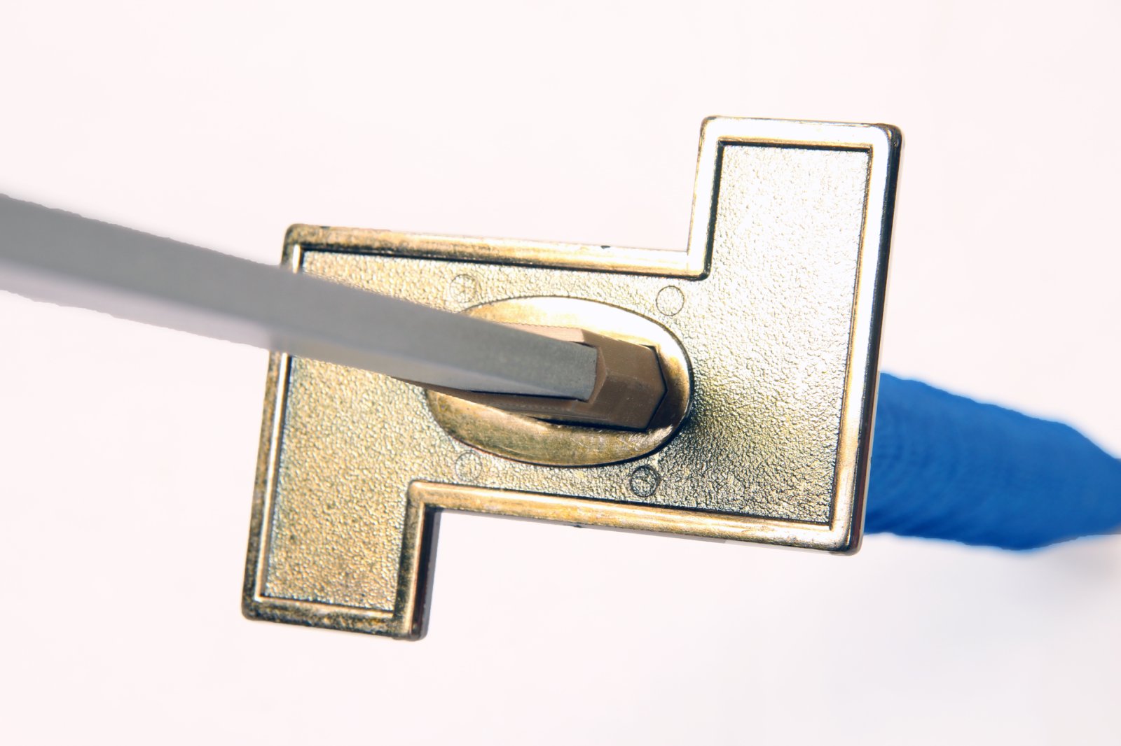 سيف ديكوري بتصميم أنيق يجسد القوة والسرعة، غمد أبيض ناصع مع مقبض أزرق يرمز لشخصية غريمجو المتوحشة والجامحة.